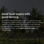 Pure & Sure Organic Coconut Sugar is made from the sap of coconut palm flower buds collected from certified organic groves and gently evaporated to preserve its natural golden-brown color and earthy flavour. Unrefined and free from additives, it offers a clean, naturally sweet taste that stands in for processed sugars.