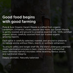 Every spice is grown organically and processed with steam sterilization to ensure hygienic handling and a longer shelf life while retaining its bold aroma. The result is a clean, flavour-packed masala that instantly lifts any dish with its natural heat and fragrance.