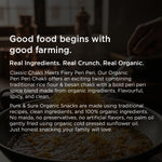Pure & Sure Organic Peri Peri Chakli is a bold and spicy twist on the classic chakli. Infused with peri peri seasoning, organic flours, and organic sunflower cold pressed oils, it delivers an addictive crunch with a fiery kick.