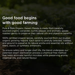 Every ingredient comes from trusted organic farms where spices are grown without chemicals. The blend is steam sterilized to ensure safer consumption, better hygiene, and longer shelf life while retaining its freshness. The result is a pure, flavour-rich rasam powder that makes warm, soothing soups and everyday meals taste more complete.