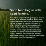 Pure & Sure Organic Maida is milled from certified organic wheat and refined without harmful chemicals, bleaching agents, or synthetic whiteners. The result is a soft, fine flour that performs like conventional maida but without toxic processing, ideal for baking and Indian breads.
