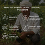 Pure & Sure Organic Dried Green Peas are carefully harvested, cleaned and vacuum-packed to preserve their natural taste and nutrition for months. Rich in fibre, protein and heart-friendly minerals, they add a creamy texture and satisfying body to soups, curries, gravies and stews. A pantry staple for wholesome, comforting meals.